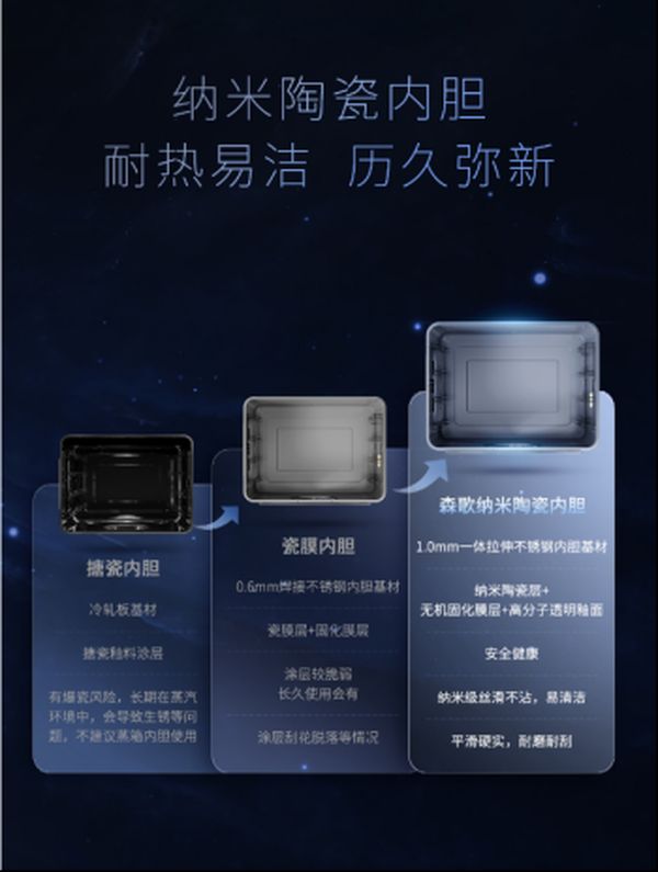 采用1.0mm一体拉伸304不锈钢基材+纳米陶瓷层