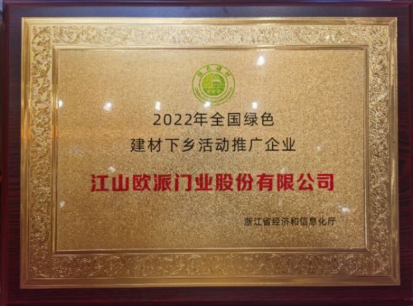绿色建材进万家 江山欧派荣获“2022年全国绿色建材下乡活动推广企业”授牌