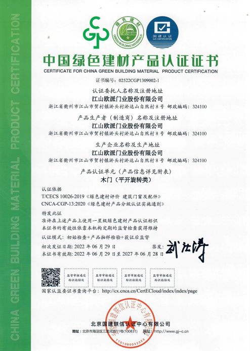 作为国家绿色工厂,江山欧派一直致力于将绿色环保理念融入产品研发和生产过程中,以“健康”为定位,不断丰富公司产品品类。公司精选环保水性漆、F4星板材等绿色原材,坚持绿色制造、可持续发展,尤其是已获得《中国绿色建材产品认证证书》的木门产品以其高品价比深受用户的青睐,江山欧派也将持续为用户打造健康家居产品!