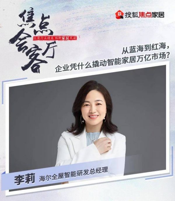但随着华为、小米、海尔等入局,以及传统建材家具品牌商推出智能化的家居产品,智能家居市场的竞争或已从蓝海进入红海,这对企业也提出了更大挑战。搜狐焦点家居聚焦智能家居,邀请海尔智家全屋智能研发总经理李莉、王力安防智能家居事业部总经理叶磊、三维家3D产品负责人曹健,进行“从蓝海到红海,企业凭什么撬动智能家居万亿市场”主题对话论坛,搜狐焦点家居全国主编刘耀儒参与主持。