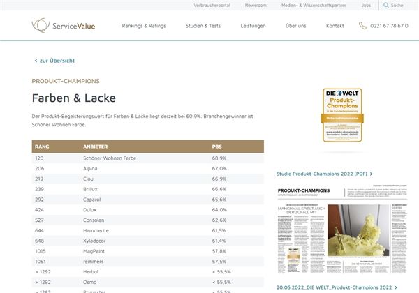 点击链接查看排名:https://servicevalue.de/rankings/farben-lacke-4/