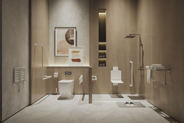 此外,对特殊人群而言,ARROW箭牌家居同样高度重视,去年对广州白云机场T2航站楼的卫生间进行了智能化升级,实现卫浴行业新突破。同时无障碍空间也被大家所关注,本次展位中ARROW箭牌家居针对无障碍卫浴空间,增加了易于抓握的扶手,其表面防滑抗菌,外观时尚简洁,充分考虑特殊人群的使用需求,增加舒适感与人文关怀,体现了以人为本的设计理念。