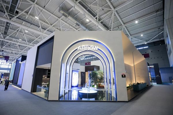 值得关注的是本次展厅设计感与科技感十足,通过“穿越”不同的生活方式,感受科技变化给生活带来不同的卫浴时空维度。其中27㎡ARROW箭牌灵感空间更是一大亮点,通透质感的设计让消费者更充分的体验到了卫浴空间带来的舒适、健康和愉悦之感。让他们在这场卫浴的时空漫游中发展生活的本真,以及对自我个性的表达。本次箭牌家居展厅位于展会的十字路口,开展首日人来人往,其醒目的时光隧道吸引人们驻足打卡,里外的光线,深邃的砂钢,不断延申、 折射、蔓延,仿佛进入了一个多维空间所构建的一个梦幻且极具张力的景象,无不透露着科技感。