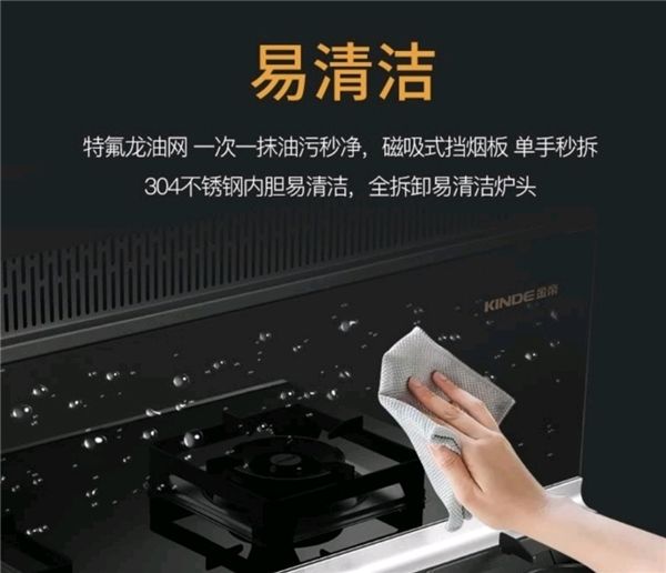 该灶整体采取易清洁的仿生荷叶纳米涂层,不沾油,非常容易清洁,做完美食,只要抹布轻轻一擦,不管是油污还是其他脏东西都能擦干净,既省时又省力!金帝BQ901ZK2双蒸一烤集成灶 的挡烟板采用特氟龙涂层,其滤油效果佳且便于拆卸,清洗时将挡烟板拆卸,轻轻一抹,油污秒净,保障烟道风口畅通无阻!相信厨房的打扫问题令很多人感到头痛,它的便捷清洁是否让您眼前一亮呢!