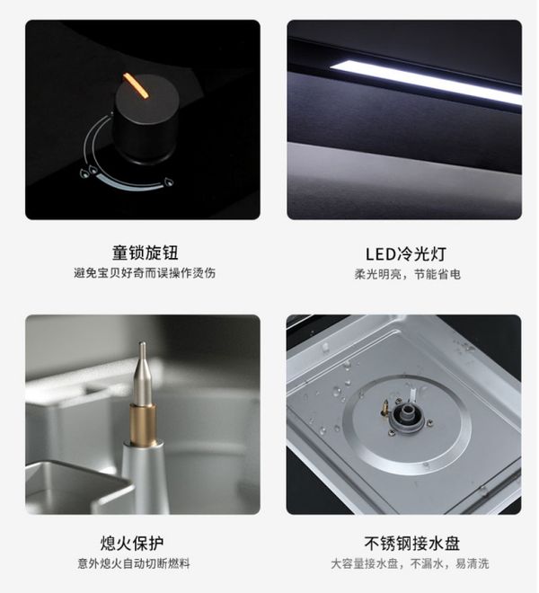 另外,博净嵌入式集成灶搭载了熄火保护装置,当大风或汤汁淋下来将火熄灭,熄火保护装置会在几秒内自动切断气源,防止燃气泄漏,杜绝安全隐患。燃气泄漏报警装置!气敏监测功能,当监测到机器内部有燃气泄漏时,关闭集成灶气源管路并报警提醒。