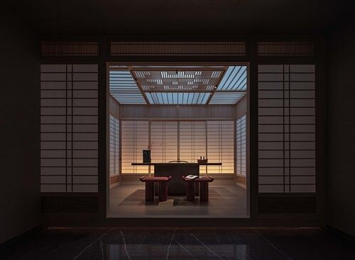 幽玄之古美,是一种无限深幽之处的无限意境之美,随着太阳的东升西落,茶室空间的情绪也是不断变换着,尤其是落日黄昏之际,在幽暗茶室中,简单的眼神和无言的会意,有种心领神会的幽深玄美;这与中国古诗“庭院深深深几许”有着异曲同工之妙。