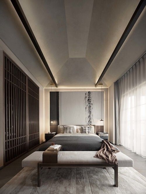 卧室选用单纯的灰调与温和的材质,散发安宁恬静的气息,忠于空间的本质功能。生命在于适当留白;开了窗,光,才能进来。