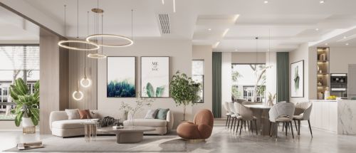“从日常生活中汲取灵感,提取秋蝉、落日、花颜、鸟语,以自然物种与居者喜欢的生活方式相结合,让空间承载人与自然和谐相处的慢生活状态。”