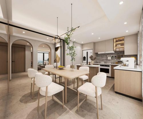 这套房屋是全明户型,南北通透,有优越的采光与通风条件,晴天可以畅享阳光与轻风的呵护,感受着光的温存和风的轻柔,温馨。白色与原木的搭配,渲染出一个简洁、温润的居室空间。搭配轻奢质感的大理石家具、绿植作为装饰,自然与浪漫结合,高雅的格调氤氲而生。