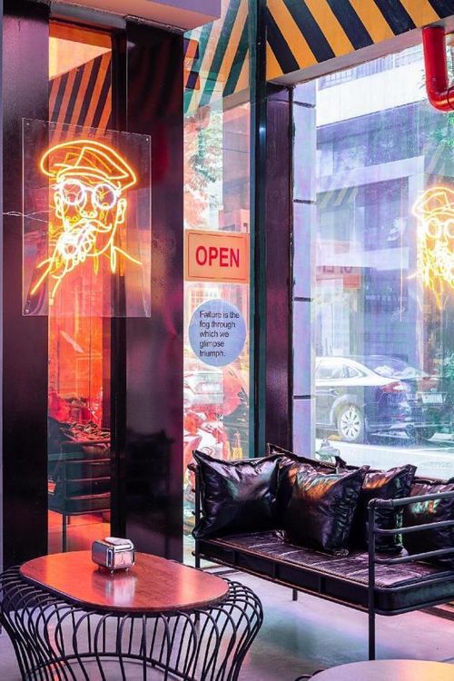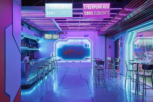 本案的主题(赛博朋克),实际上是包含了两种意义存在,第一点是打破环境本身的物理约束,第二点是打破精神层面的传统约束。这两者的最终目的是让快节奏生活下的都市年轻人可以在这里充分的解放天性,释放压力,赛博朋克的风格更多是传达一个精神主题。