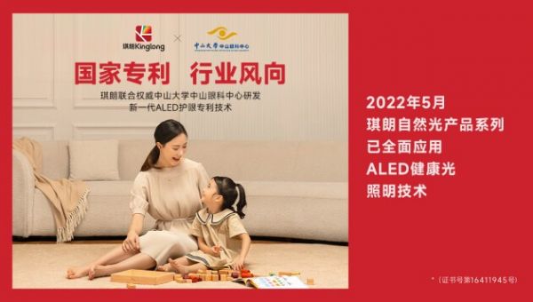 同时随着我国儿童青少年近视呈高发和低龄化趋势,严重影响儿童青少年的身心健康,已成为全社会关注的焦点,体现出琪朗一直探索健康护眼照明的重要性。 2021年琪朗率先在行业布局健康照明领域,成立“健康光学研究院”,并联合国家级权威机构中山大学中山眼科中心研发出最接近太阳光谱的新一代ALED护眼专利技术(专利号:16411945号),实力践行国家专利官方认证资质,名副其实地成为 “健康照明”的先行者。