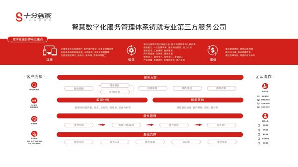 十分到家以智慧服务平台、服务连锁、服务工厂为抓手,从服务平台公司转型为服务实业公司,从售后服务升级为集安装、维修、保养、回收于一体的家电后市场综合服务,为品牌方提供全方位全场景的个性化定制解决方案,成为品牌方最紧密的合作伙伴,助力品牌方成功。
