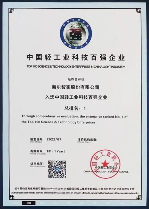 稍作盘点不难发现,海尔智家的表现可圈可点。在8月9日的中国轻工业联合会年度颁奖活动中,海尔智家两项科技成果荣获中国轻工业联合会科学技术进步奖一等奖,均被认证为国际领先水平;紧接着,8月10日,海尔智家又荣获“2021年度中国轻工业科技百强企业”榜单第一,两年蝉联榜首。荣誉不断,也只是海尔智家科技引领的冰山一角。