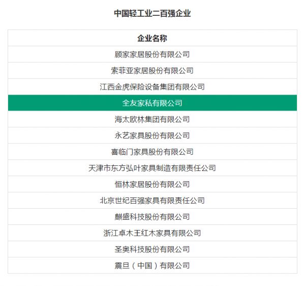 网址:全友荣获2021年度“中国轻工业二百强企业”等称号 https://c.jiaju82.com/news-view-id-823136.html