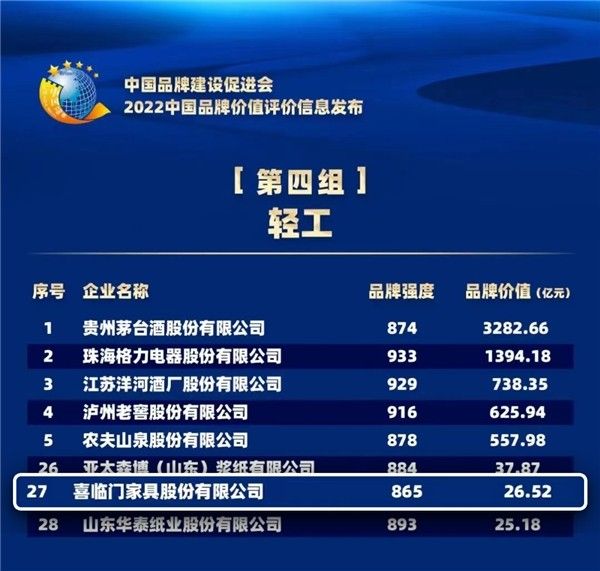中国品牌价值榜单发布,喜临门、贵州茅台等企业强势上榜!