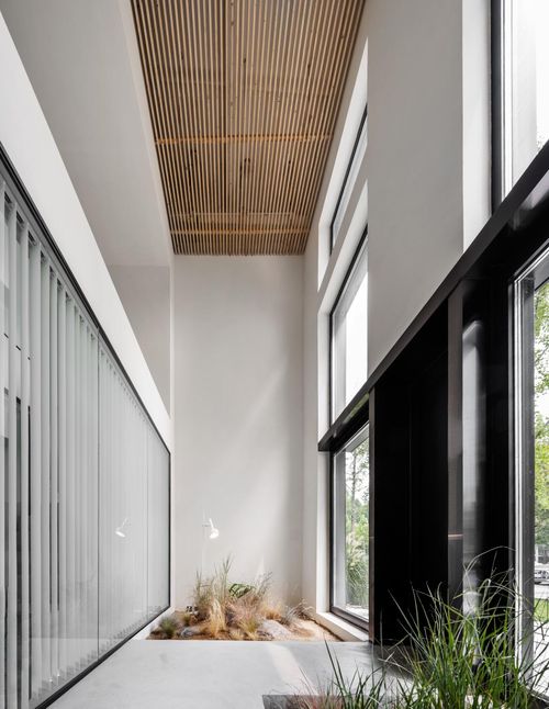 一方面是在当下生活中充斥着冷冽的信息技术手段,使得人们对自然世界充满憧憬,我们对亲近性美学心驰向往,例如木质元素在室内的运用、原木材质家具的选择,自然光线的表达及景观视野的融入等。通过延续自然的曲线,使之成为设计结构的一部分,私宅及办公类空间业主着眼点也常常在此类需求上。