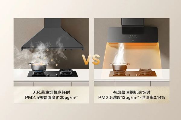 简单来说,风幕锁烟就是用52度的斜面风幕设计构建一个完整形态的三角锁烟区,将油烟牢牢锁住、无处可逃,降低对鼻、眼、咽喉黏膜等器官的侵害,同时降低PM2.5的浓度。对女性来说,造成毛孔粗大、冒痘和肤色暗沉的诱因中,空气污染等环境因素占比也高达28.8%,风幕锁烟设计同样可以有效减少这些问题的产生,还用户一个健康、清新的厨房空间。