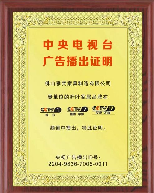 叶叶家居成立于2013年,品牌定位:叶叶家居|年轻人买得起的时尚家具。叶叶家居2016年开始家具产品的生产制造,距今已发展到沙发一厂、沙发二厂、茶几电视柜工厂、河北香河分厂、软床厂等5个全资工厂,成为佛山软体家具制造业的重要一员。期待本次借助央视的推广,为叶叶家居2025年前全国建设500个以上的网点目标和品牌建设起到强大推动作用,将叶叶家居品牌提高至一个全新的高度和认知。
