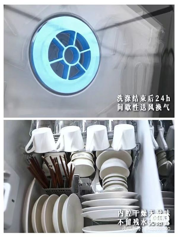 美大集成水槽洗碗机的智能呼吸换气系统,洗烘之后24小时自动间歇性送风换气,能把残余的最后一丝水汽尽数排出去,下次使用拉开抽屉就能得到干燥清新的干净餐具,每次看到满满当当的干爽碗盘真的很有满足感!