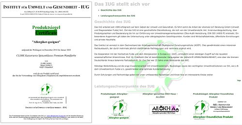 并经德国IUG机构检测认证为无过敏原、适用于过敏性疾病患者的产品,为墙面筑起无忧安心的护敏屏障,降低过敏风险,使易敏人群可以安心生活在更舒适的安全地带。INSTITUT FÜR UMWELT UND GESUNDHEIT,环境与健康研究所,简称“IUG”,该研究所通过引进环境管理系统,特别注意从过敏学的角度进行检查,该机构将 “适用于过敏症患者 ”的产品印章授予经过全面测试后符合过敏症患者所需的准则和方向值的产品。因此IUG产品标志为消费者在选择适合过敏症患者的产品时提供了值得信赖的决策帮助。