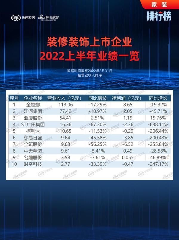 新浪家装讯截止目前,各大上市家装公司基本均已发布“2022年上半年度业绩报告”(简称报告)。