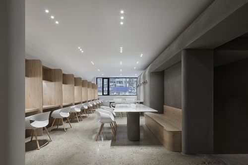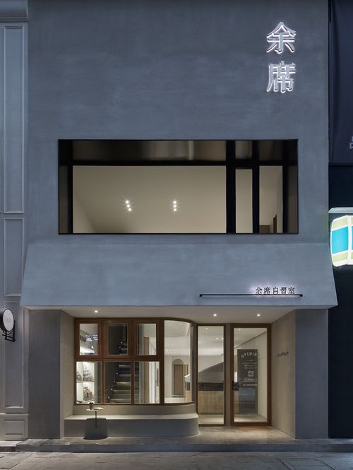由于是VI与室内同时设计的原因,主人要表达的读书环境的简朴,幸福的孤独感,都通过整体材质与色彩基本表达出来,门头的24小时长明灯和对外的一个简单座位,正如店名“余席”,“既然路过了,希望某某某的你感受到了,这儿有一个位置为你留着……”