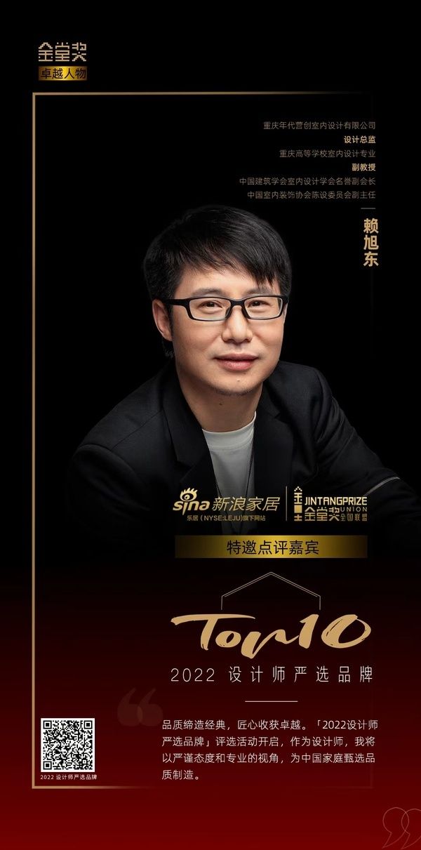 其中,重庆年代营创室内设计有限公司 设计总监、重庆高等学校室内设计专业 副教授、中国建筑学会室内设计学会名誉副会长 中国室内装饰协会陈设委员会副主任 赖旭东作为本次活动的特邀点评嘉宾,他表示:品质缔造经典,匠心收获卓越,「2022设计师严选品牌」评选活动开启,作为设计师,我将以严谨态度和专业视角,为中国家庭甄选品质制造。