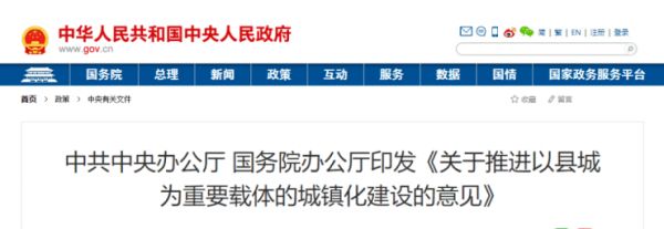 近年,国家一直把县域作为城乡融合发展的重要切入点,倡导推进各县域经济高质量发展。今年发布的《关于推进以县城为重要载体的城镇化建设的意见》提到,到2025年以县城为重要载体的城镇化建设要取得重要进展,明确了以县城为重要载体的城镇化建设的发展目标和具体任务。