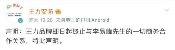王力安防紧急中止与其合作关系