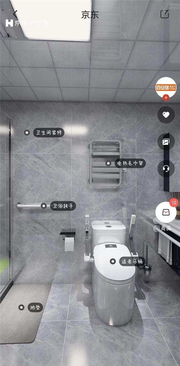 为了方便消费者在线选购适老套餐,京东基于云设计平台“京东设计家”推出适老VR场景购,以卫浴、客厅、卧室、厨房四大空间为主,通过智能算法打造出多达千种适老设计方案,同时可依据消费者需求量身定制。只要在线上传户型图,即可获得与自家适配的设计方案,实现“所见即所得”的沉浸式选购体验。