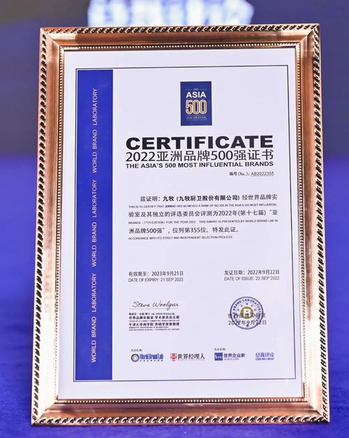 喜报!九牧荣获亚洲品牌500强,卫浴行业第一!