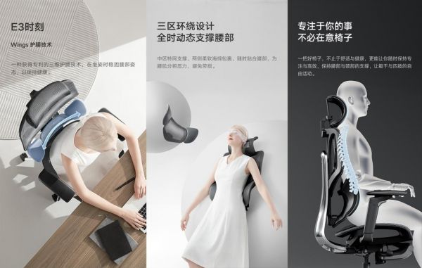 作为黑白调的主打旗舰,E3系列最引入注目的设计就是独创的三区护腰模式。