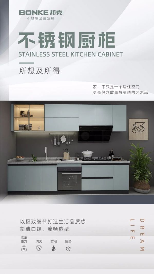 在消费升级、追求健康环保的背景下,不锈钢橱柜已然成为了越来越多家庭打造理想厨房的优佳选择。作为一家有着25年家居领域经验赋能的全屋定制品牌,邦克专注提升用户在整体厨柜的使用体验,多维度满足消费者对美好生活的追求,努力打造让消费者更加信赖的高端品牌。