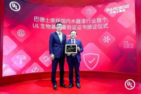 2021年11月,巴德士集团旗下品牌花王水漆荣获国内木器漆行业首个UL生物基含量认证。此次巴德士水性木器漆产品通过UL生物基含量验证,不仅是展现巴德士集团在水性木器漆生物基材料研发上的成果,实现了企业对环境管理的承诺,对天然环保的重视,对整个国内木器漆行业都具有积极的影响。