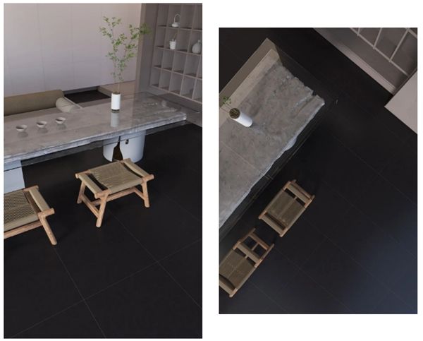 GYT750512浓郁深黑,采用国际色彩中最纯净的黑色,色彩深邃而神秘,整体铺贴使空间表现出庄重而又高雅的特征,可以让人有与生俱来的高级感的体验。采用数码釉技术,产品光感控制7-10度微光质感则弱化了黑色的冰冷气息,如磨砂般的质感,雕琢出空间的别具特色。