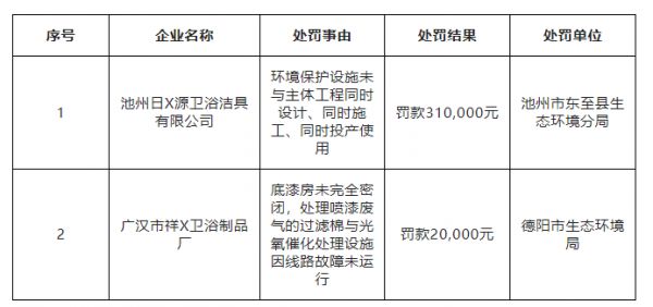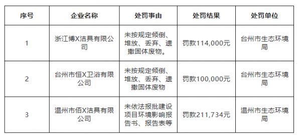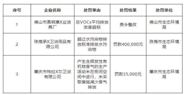 14家卫浴企业环境违法被通报,罚款金额超170万元