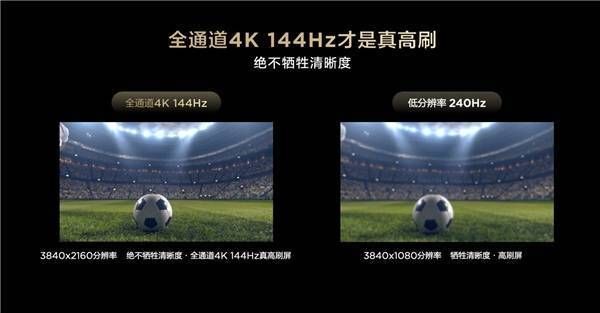 定位高清画质,提供高刷新率。全系搭载全通道4K 144Hz真高刷,即从接口、芯片、屏幕、算法都实现了144Hz刷新率,这样的配置带来最明显的好处就是画面更流畅、不卡顿不拖尾,在保持高刷新率的同时高清画质也能完美输出。