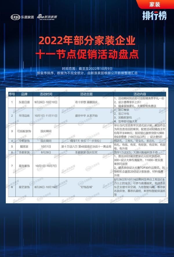 排行榜 | 部分家装企业十一节点促销活动盘点