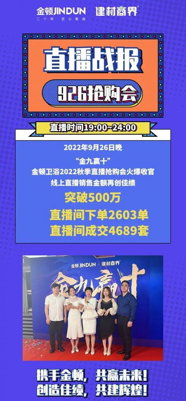火炎焱燚!“金九赢十”金顿卫浴2022秋季新品抢购会再创佳绩,线上销售额突破500万!