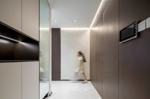 在本案中,从玄关空间选用的水波肌理艺术漆,就让整个空间灵动起来,想要探索更多的秘密空间。