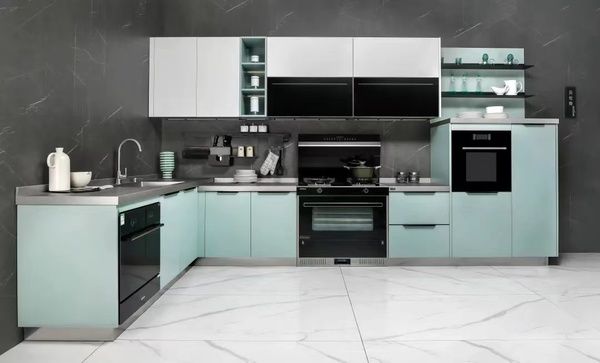 于是我们看到多种形式的“突围”:集成洗碗机、净水、热水器为代表的水洗品类的横向拓展;蒸烤独立、一体化台面、智能语音、蒸烤炸消储、自清洁等技术的纵向深入探索;家装、工程、下沉等新兴渠道的积极开拓运作;以及我们今天论及的不锈钢厨柜加入的整体厨房布局,成为了可以被归类而出的破局之道。