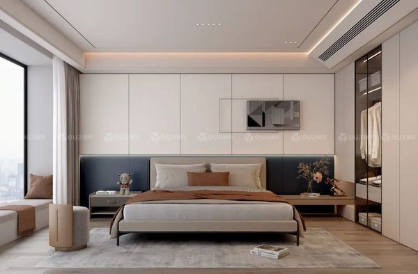 将飘窗砸掉,再设计成榻榻米,空间允许的情况下,也可将榻榻米与柜子结合,充分增加空间的收纳能力。