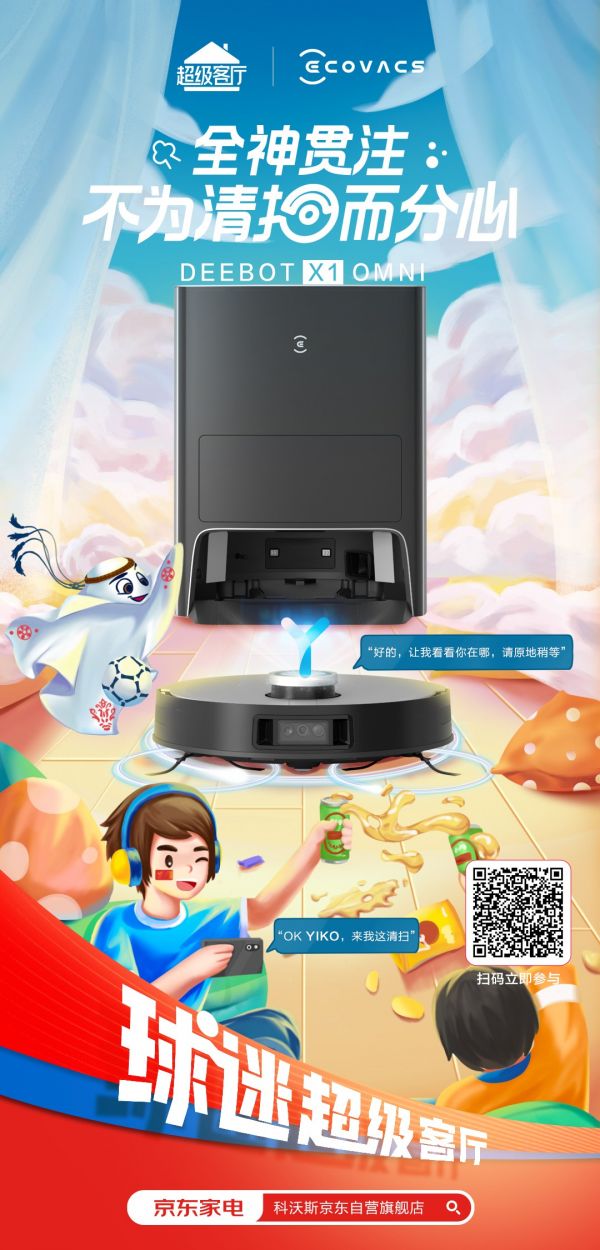 球迷超级客厅,为家务“减负”让球迷看球家务两不误。现代社会对于智能生活的追求日益提高,各种繁杂家务在智能家电的帮助下迎刃而解。看球的快乐,不能被清扫耽误,科沃斯DEEBOT X1 OMNI你可不能错过,一键启动智能清洁,解放双手为超级客厅的体验加码。