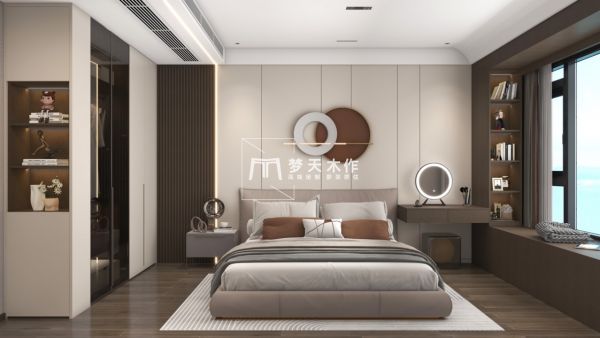 比如那对年轻业主的方案,木作的形、色、质给整个空间提升了档次的同时,木作独特纹理色泽会使业主产生温暖感和舒适感。该方案全屋的木作产品是选用梦天,梦天木作无论漆面质感、纹理的自然和谐、还是用料环保等级都是在木作行业中的佼佼者。采用水性漆代替油漆的梦天家居不仅给你打造一个精致的装修还给家人带来健康的美好生活。同时梦天家居的门墙柜一体化设计,让色彩、工艺、效果更加统一。