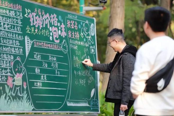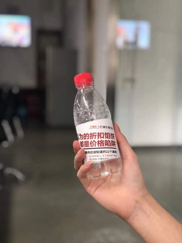 这感觉竟然有点梦幻!这么贴心的沙发,是谁安排上的?旁边一块大黑板引起了人们的注意,上面写着:“天禧派·打掉价格泡沫——全民小讨论”。原来沙发和熊不是为了摆拍,而是为了引起人们对价格泡沫和打折套路的警惕。生活中的我们经常会购买许多商品,可能一大部分钱,都在为虚无缥缈的价格泡沫支付。