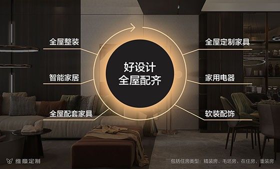 涵盖空间定制、配套家具以及软装到智能家的全品类配齐,对供应链整合、SKU能力和全案设计能力要求极高。所以市面上的很多定制套餐,大多数还处于“成品化的销售思维”,往往不具备一个最重要的核心能力——“设计先行的全屋配齐”。维意定制全屋整装、全屋定制家具、全屋配套、智能家居、家用电器、软装配饰等一站配齐的口碑效果,很大程度上来自维意定制的 “设计黏性”。