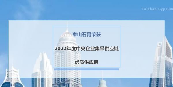 喜讯!泰山石膏荣获“2022年度中央企业集采供应链优质供应商”