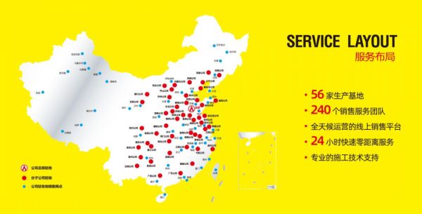 公司主要产品有石膏板、轻钢龙骨、抹灰石膏、装饰石膏板、护面纸及相关配套产品六大类六十多个品种。石膏板年生产能力25亿平方米,轻钢龙骨50万吨,装饰石膏板2亿平方米,护面纸65万吨,56家生产基地分布于23个省市自治区,240个销售服务团队分布在全国各地,全天候运营的线上销售平台,为客户提供24小时快速零距离服务和专业的施工技术支持。是国内同行业覆盖地域最广,产能布局最合理,市场占有率最高,竞争力最强的企业。