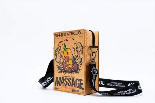 「ACECOOL小鸟斗士」的包装设计,采用独创的闪蒸法制成的特殊织物,世界上只有杜邦公司才能⽣产,它综合了纸张、薄膜、布匹的优点,结实⽽耐⽤、柔软⽽强韧,有稳定⽽均衡的物理特性。不规则的折痕纹路,加上黑底白字的肩带,硬朗炫酷质感高级,包装的张扬潮酷,诠释产品内核的温柔体贴。