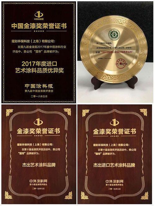 近年来发展迅速,以立体质感、绚丽色彩、时尚风格、A+环保等特点,在国内市场好评无数,也在行业内获奖颇多——蝉联5届“金漆奖”、2017年度艺术涂料品质优异奖、艺术涂料影响力品牌、2018装饰行业设计师推荐品牌、2021年消费者信赖十大涂料品牌、2020-2021年度十佳设计师首选推荐材料品牌(天星奖)。